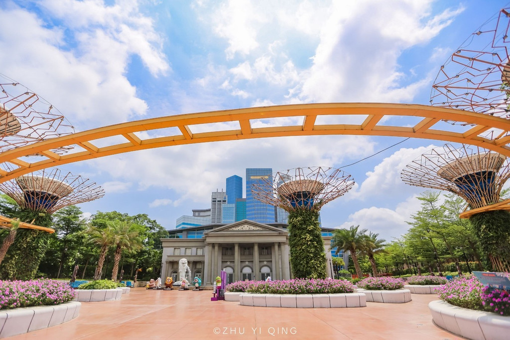 方特东盟神画中每个国家都有自己的主题,比如新加坡的就是寻找鱼尾狮,鱼尾狮是新加坡的地标,而在博物馆和滨海湾花园的树柱下,能感受到花园城市的热带风情,在蓝天白云下,让人仿佛就像是身处在新加坡一样。