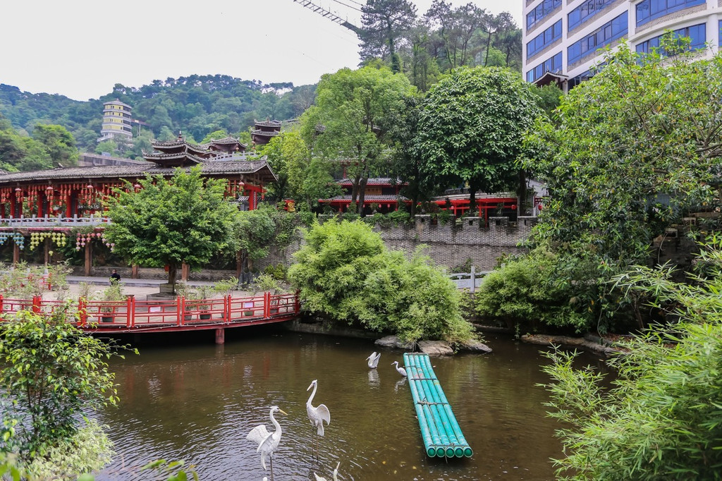 整个景区的建筑物现代化与古典艺术相互结合,非常精致,同时也在这里见到了一些隐匿在深山之中的笔记。景区划分了很多区域,有树林,游泳池等地方,每到一块地方接触的都不一样,给人的视觉审美也不一样。