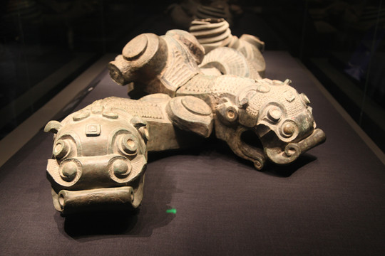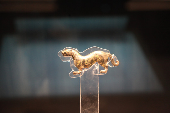 孩子喜欢读《陕西寻宝记》,里面的故事耳熟能详,提到陕西省历史博物馆的馆藏文物——镇馆之宝“金怪兽”,正巧我拍摄到这张图片,并看过解说词,原来这是匈奴王系在裤腰带上的装饰物,象征身份的高贵。于是跟孩子分享了这段感受,皆大欢喜。