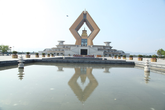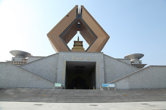 参观过法门寺,外婆和龙太子选择坐最后一班观光车先回去,我径自朝佛指舍利塔走去。远处一个高耸的双手合十的巨型建筑,最高处供奉的就是佛祖的真身指骨舍利。