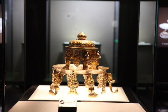于是,龙太子和我甩开外婆,径直朝法门寺山门大步走进去。不到半小时,就浏览完整个寺院,法门寺的珍宝展有许多很有价值的珍稀文物,从金玉佛像到瓷器,从佛教禅杖到各色法器,居然还有唐代出土的又薄又纯净的玻璃器皿,令人大开眼界。