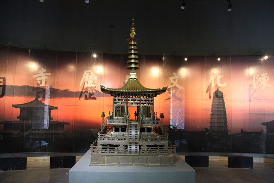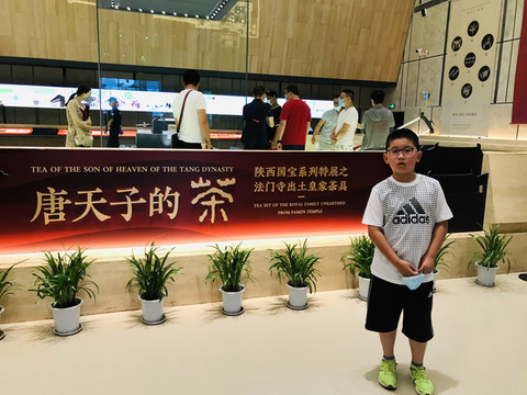 毕竟是孩子,长时间泡在这样文物古迹丰富的博物馆,时间一长难免感到枯燥乏味的。于是,小朋友开始快速浏览,并不停地回头来催促我快点看。临近中午,终于看完了何家村窖藏文物大唐遗宝展,于是驾车奔宝鸡扶风县的法门寺。