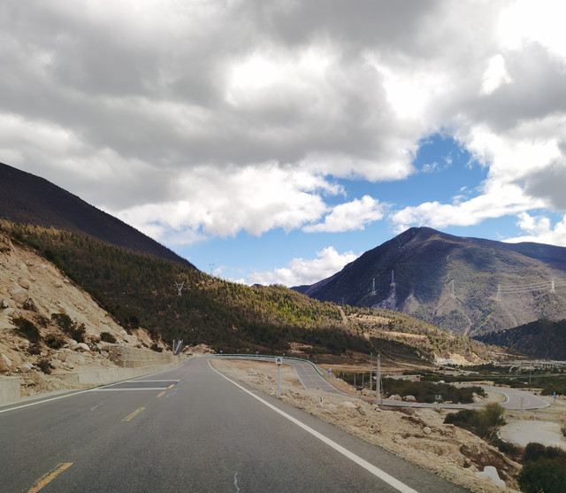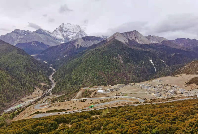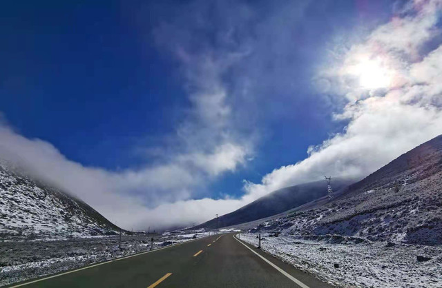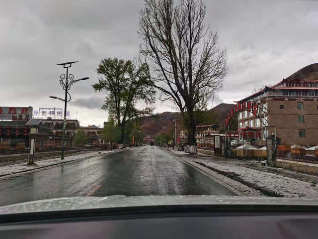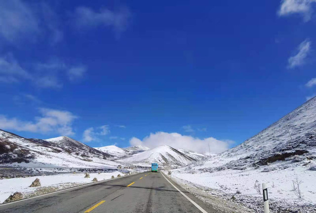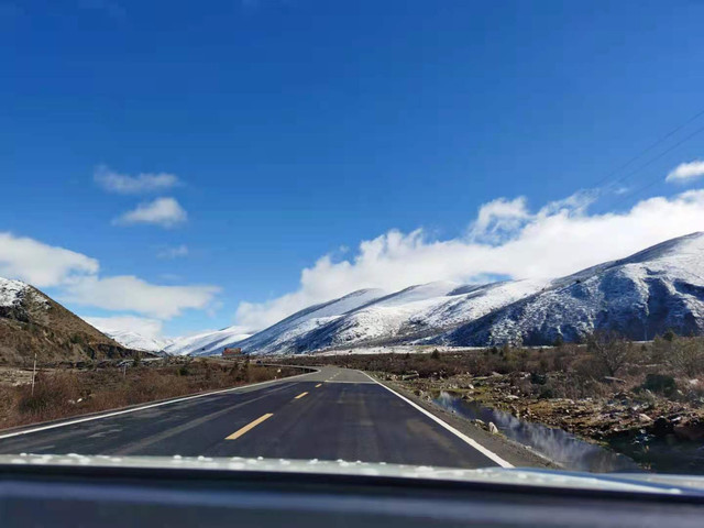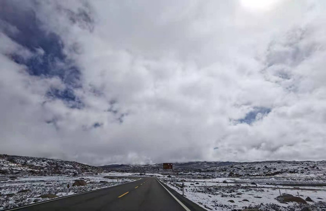 今天开始返程,从 稻城 亚丁直接开回 重庆 要将近17个小时,一天很难开到,所以我们选择今晚开到途径的 资阳 市(13小时左右),大家还可以根据自己行程时间选择途径的 康定 、 雅安 、眉山或 洪雅县。今天天气不错,刚出 香格里拉镇没多久,就看到晴天下的雪景,想必昨晚应该是下了很大的雪