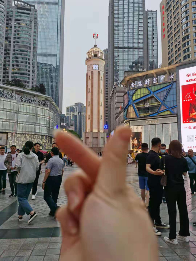 人虽多,好在也算是看到了名不虚传的轻轨进楼景象。从李子坝站再坐几站2号线到了 临江 门,下来走几步便是解放碑了
