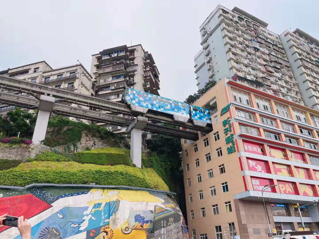 出了重庆北站,从地图上看,过一条马路便是租车门店,步行显示只有小几百米,于是我们打算拉着行李步行过去,山城果然名不虚传,看着对面隐约的门店,可这条马路,硬是绕了几圈才过去。办好手续,拿到预定好的小探歌T-ROC(考虑到后期川藏线,还是选SUV稳妥些,奈何现在神州和一嗨这种大型连锁租车公司车型日趋减少,好在整体下来,探歌也没让我们失望)。随后前往酒店放好行李,酒店守着新光广场,还算繁华且交通方便。考虑到晚上要去的洪崖洞周边一定是爆堵,最终还是决定把车停在酒店,坐地铁前往,同时,还可以感受一下 重庆 著名的穿楼站点-李子坝轻轨站(2号线)。