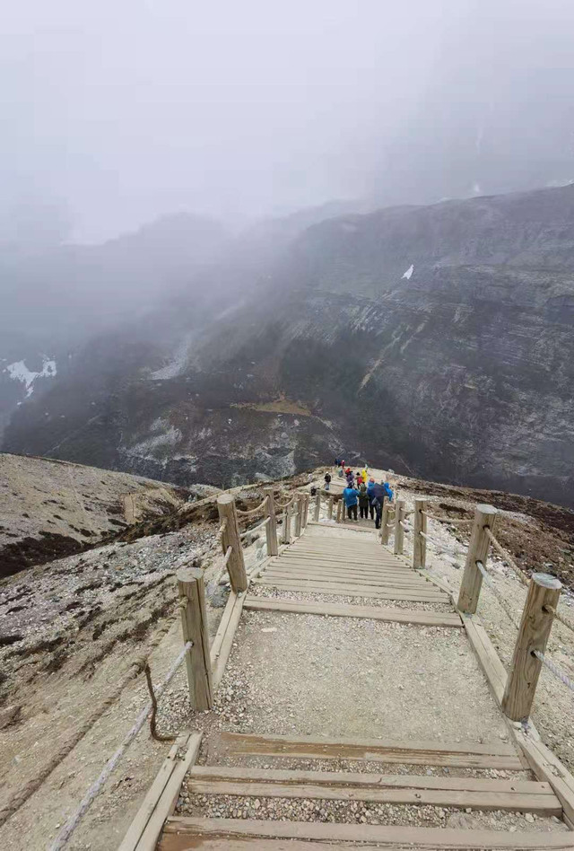 最终,我们用比较常规的速度,用时2小时40分钟走到了牛奶海。短暂欣赏和休息后,又继续前往距离仅0.3km的五色海,虽然只有0.3km,这是一段垂直爬升的阶梯路,再加上此时的体力消耗,从牛奶海到五色海,再回到洛绒牛场,返程一共用了3小时