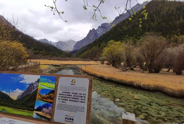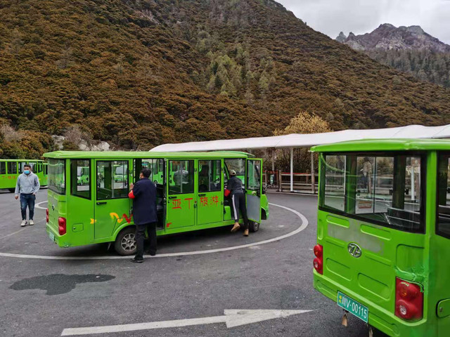 从扎灌崩下来,途径冲古寺和短线珍珠海的路口,如果选择短线,也是在这里前往。步行约15分钟走到后段观景电瓶车乘车中心-冲古草甸,这里可以选择再购买观景电瓶车前往洛绒牛场或者徒步前行,单程6.7km,单程50元/人,往返80元/人,车程20分钟左右