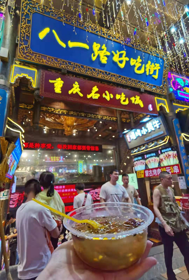 顺着解放碑再走两步便是八一路好吃街,里面小吃很多(本地的出租车司机也推荐这里,不知是否会像 武汉户部巷、 长沙火宫殿、 上海城隍庙、 西安回民街等等,那种以外地游客居多的情况),人是一如既往的多