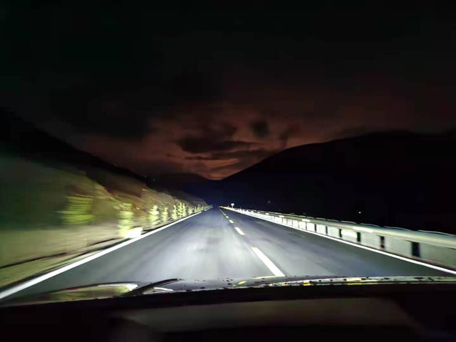 很快,天就彻底黑下来了,到了晚上22点多,眼看快到 理塘 了,这时开始下起来大冰雹,大到已经快看不清路了,恰逢车的冷却液也开始报警,山路上没有任何维修站,无奈只好每到一个停车区,就熄火停一会儿再继续。晚上23点左右的山路上,熄了火儿,黑的完全就是伸手不见五指