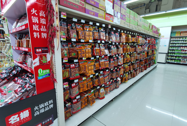 头一天尽可能往前赶,就为第二天争取了宽松的时间,11点左右就赶回了 重庆 ,中午又去吃了火锅,然后在 重庆 北站附近找了一家永辉超市,去买火锅底料(网上都说永辉的正宗),超市里确实很壮观,饭巢和名扬牌名气比较大些