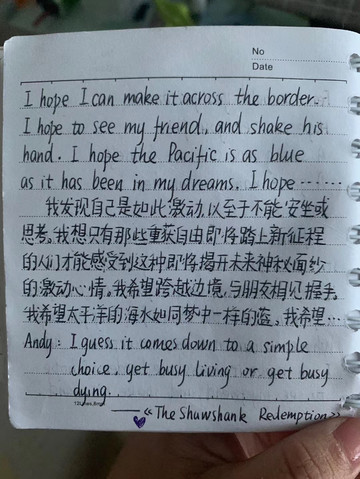临行前我翻开高中的日记,忘了读过哪个作家笔下的西北了,从十几岁,大西北就是我的dream land,虽然我没见过,但他一定在我梦里出现过,使我写下了一些没头没脑的话。我猜我想说的是麦浪,而我此时心情,和《肖申克的救赎》中最后一段台词,Red出狱去见海边老友Andy时的内心独白,一模一样: