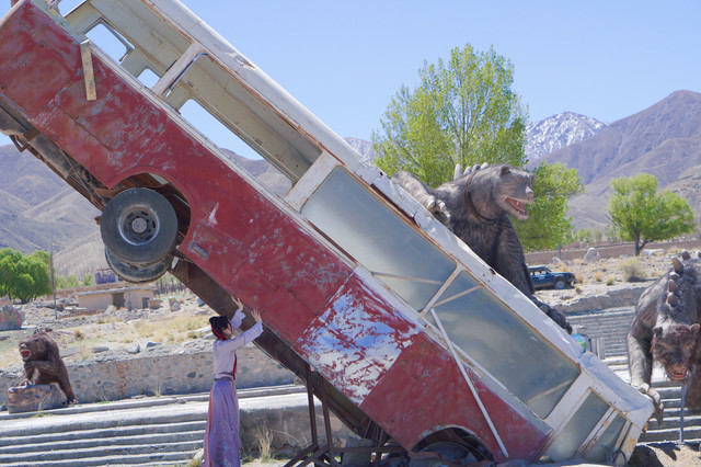 然后路上经过石油小镇,也就是《九层妖塔》的拍摄地,这个地方其实以为我觉得还不错的。适合拍那种末日废墟感的照片,因为背景都是戈壁荒漠,拍出来其实蛮有感觉的,不过我穿的不太搭哈哈。
