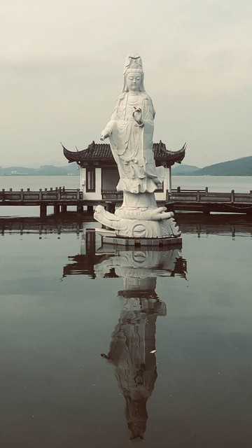 到了寺庙里面,发现有这个后门,门并不大,但是开开门就是湖面,这种布景确实很好。