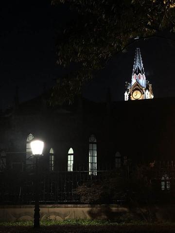 在这里扫视一周,看到了一个钟楼。教堂阴阴森森的,建筑外墙也没有布什么等挂钩呢,第一眼看过去确实有一些害怕。