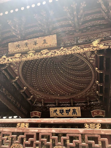最厉害的是这个戏台的穹顶,特别高级。和在其他地方看到的江南建筑完全不是一种类型。特别喜欢这个穹顶。由此可见,古人的审美其实是很高级的啊。
