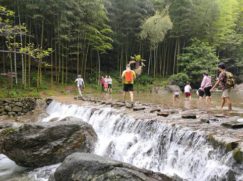 两旁都是特别高的竹子,真的是长见识系列,我都没有见过这么高的竹子。走着走着就能看到小溪流,水很清澈。我看到有人在石头上蹲着,用这里的水流洗脸,估计得很舒服吧。