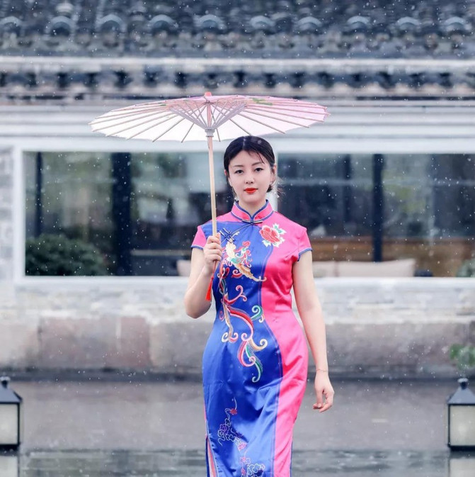芊芊淑女,婀娜旗袍着身,曼妙多姿,笑颜如花绽,玉音婉转流,皎皎兮似轻云之蔽月,飘飘兮若回风之流雪。