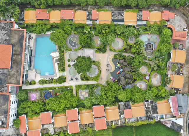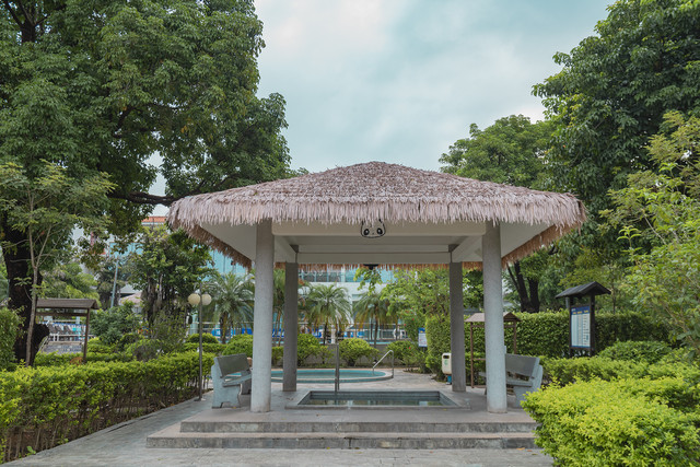 顺逸东方白盆湖温泉度假村有天然露天温泉泡池22个,从空中俯瞰,泡池形态各异,有太极八卦形,有树根式的,还有洞穴式的......掩映在绿树红花之间,让人恍然置身于森林原野之间,仿佛置身在静谧的大自然中,甚至与自然浑为了一体。