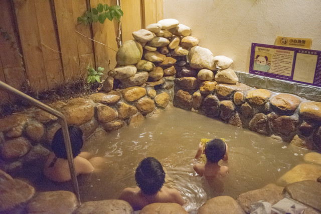大大小小的温泉泡池,可以挨个儿泡,还时不时有服务员端茶递水。