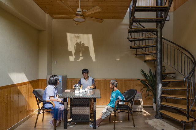 我们的星空别墅套房入户厅还配有茶室,晚上一家人可在此品茗聊天。