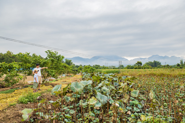 农场距离度假村不远,开车自驾几分钟就能到达。大片的农作物将土地勾勒成一幅图画,有荷塘,还有小河。