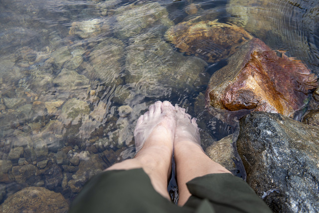 这里的水最深处可到一个成年人的腰间,水底全是鹅卵石,长年被水流冲刷得干干净净。会游泳的便充分享受游泳的乐趣,不会游泳的便坐在岩石上将脚丫子伸入水中过瘾。