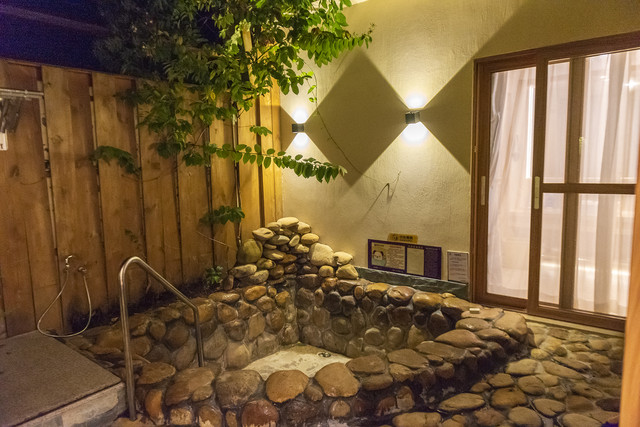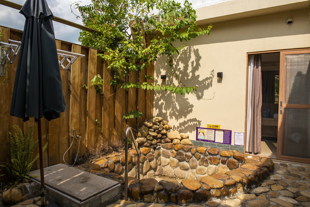 庭院有私密温泉,不用去公共温泉池跟人挤,而且想什么时候泡就什么时候泡,非常方便。