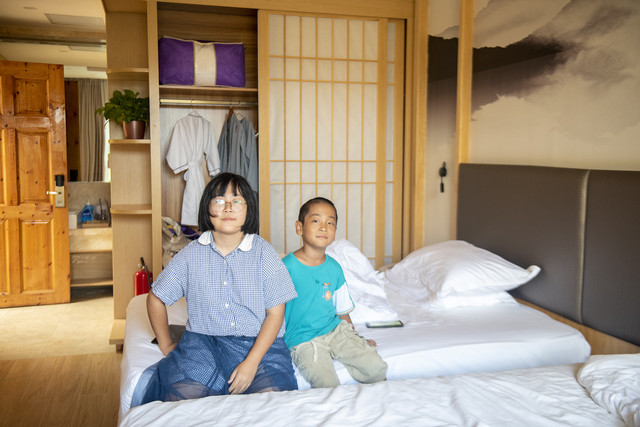 客房是田园和风系,夜晚非常宁静,晚上还能在院子里看星星,孩子们都说住得很舒服。休整了一个晚上,第二天个个精神抖擞,我们跟酒店预约了去农场采摘,想让娃接触大自然,体验田园风光。