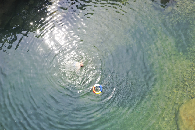 带孩子来玩的人,通常都会准备好泳圈,孩子们套上泳圈,在浅水区游泳、戏水。倒也玩得比跳水的人丝毫不逊色。