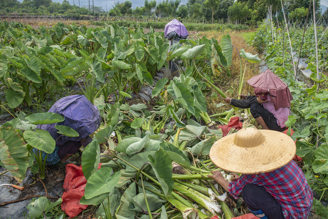 农场里种植了许多作物,例如玉米、豆角、青菜、生姜、芋头、茄子、番薯等等,甚至还种植了稻田,待得稻子成熟,还能带着娃亲手收割稻子。
