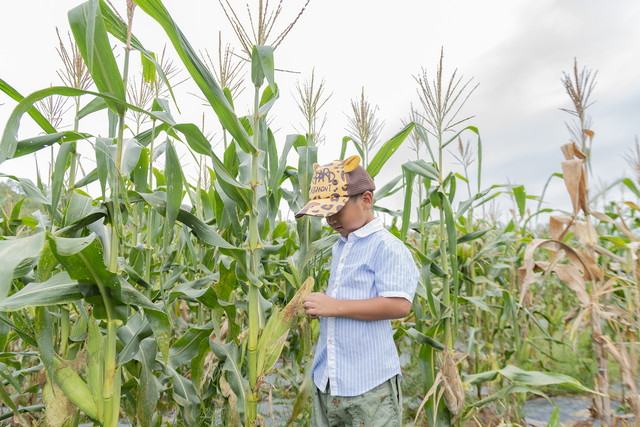 从小在城市里生活的娃,对一切都感觉到新奇。娃亲手掰了玉米,这可是他第一次掰玉米。最初的时候,甚至不知道怎么入手,等终于掰开了玉米,别提多有成就感了。