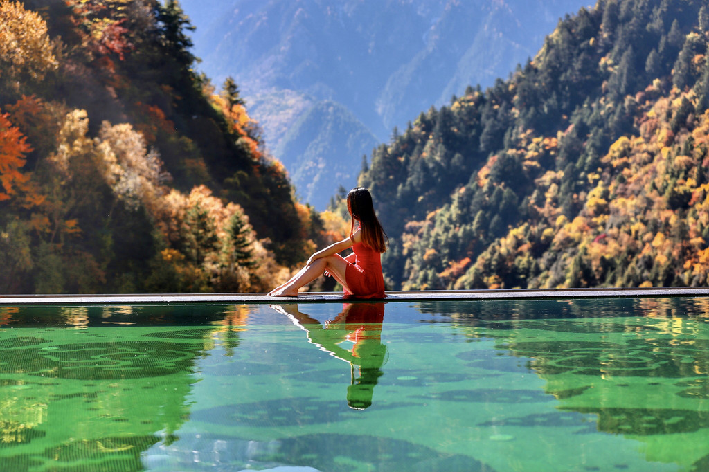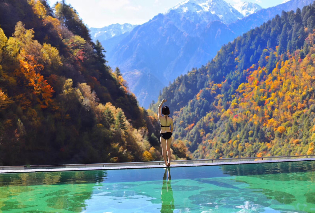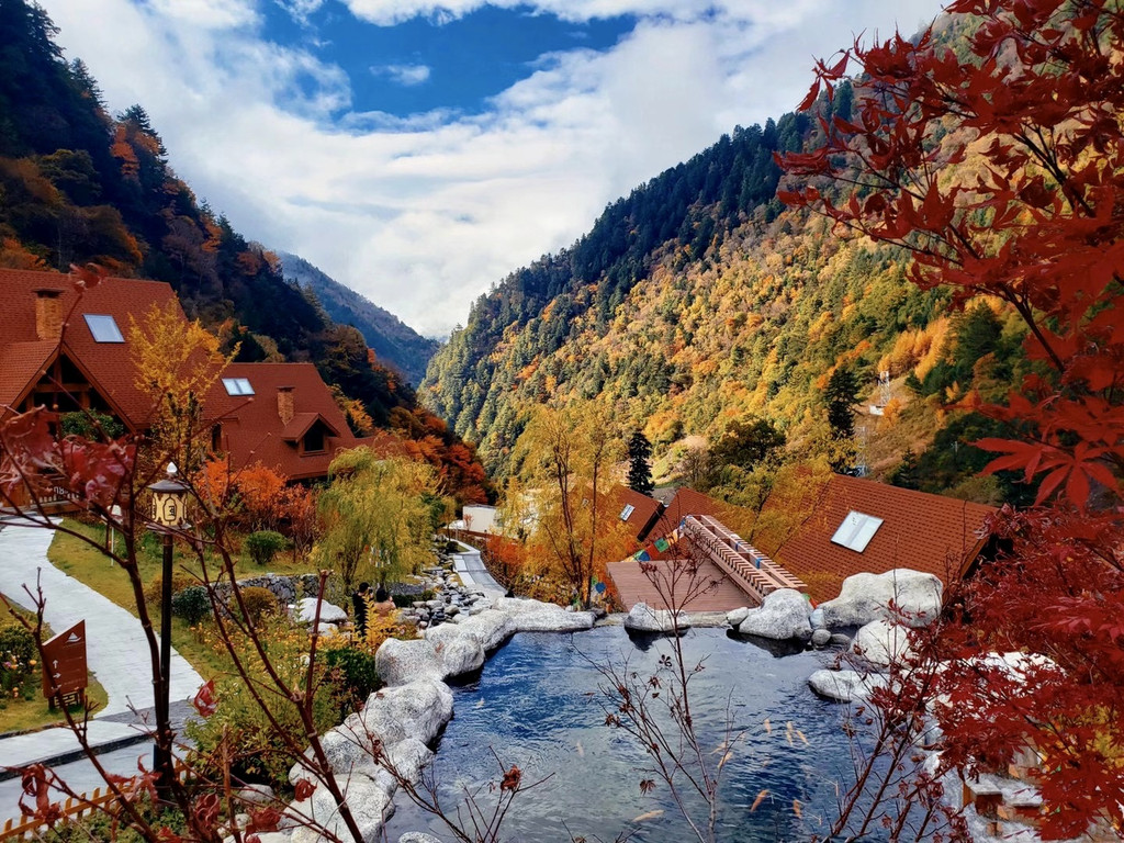 隐藏在雪山彩林之间养生圣地,蜀西唯一集饮用、浴用、疗用为一体的五星级千年温泉,更设有唯一山间无边界泳池,只要天气晴朗,随拍亦是大片。置身其中,烟雾氤氲,无比舒畅。