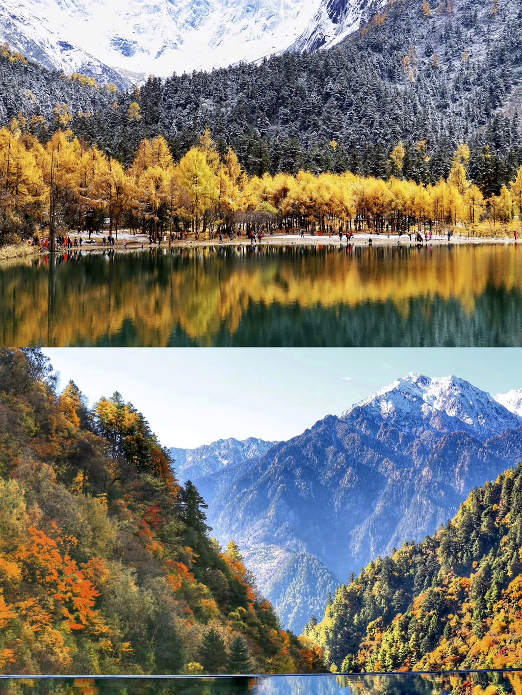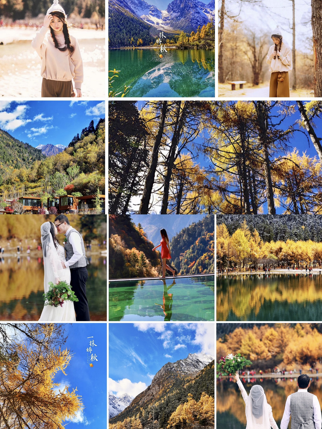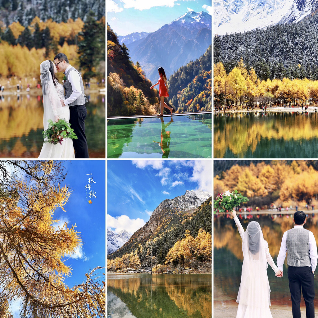 被誉为 川西 瑶池,山野苍茫中,更有两汪绝美湖泊隐藏其中。由于靠近蜀山皇后,她也被比作 四姑娘山 的美丽背影。这是个五彩斑斓的世界,浓绿的树,深红的叶,青青的湖,湛蓝的天,纯白的雪,构成一幅幅油画,等你来置身画中。