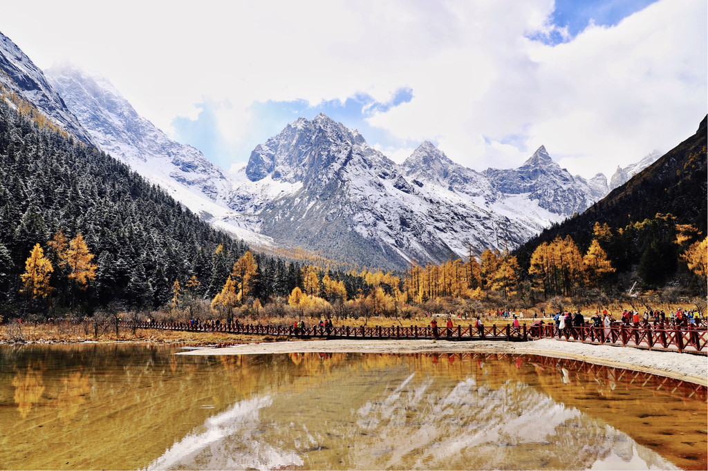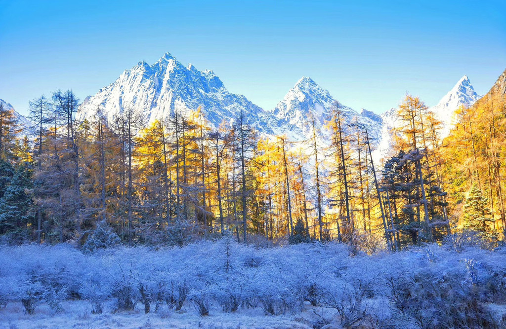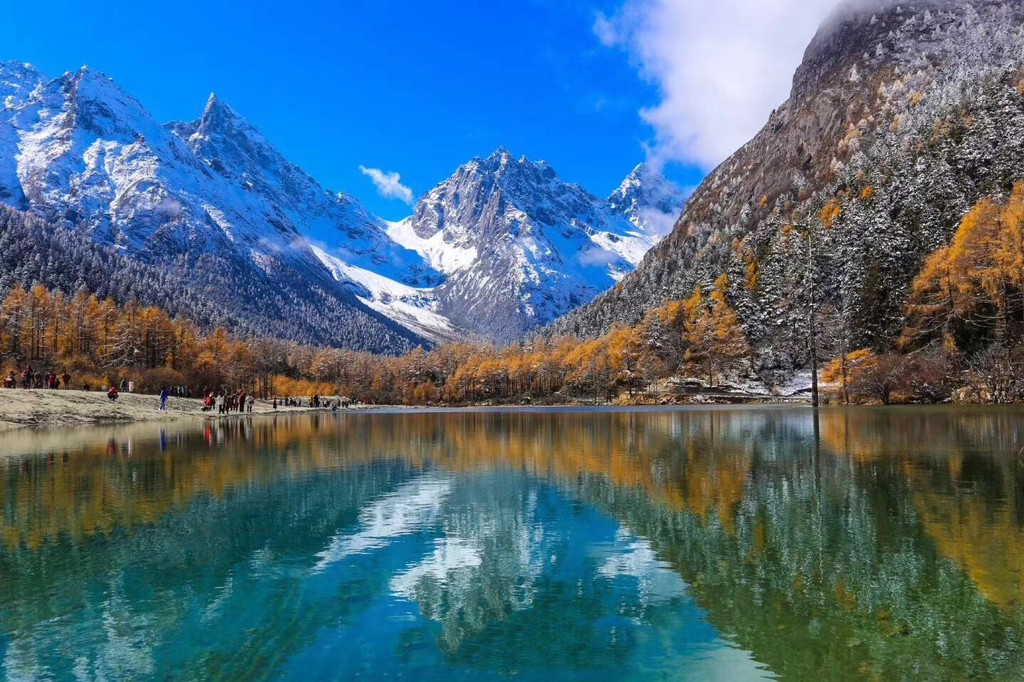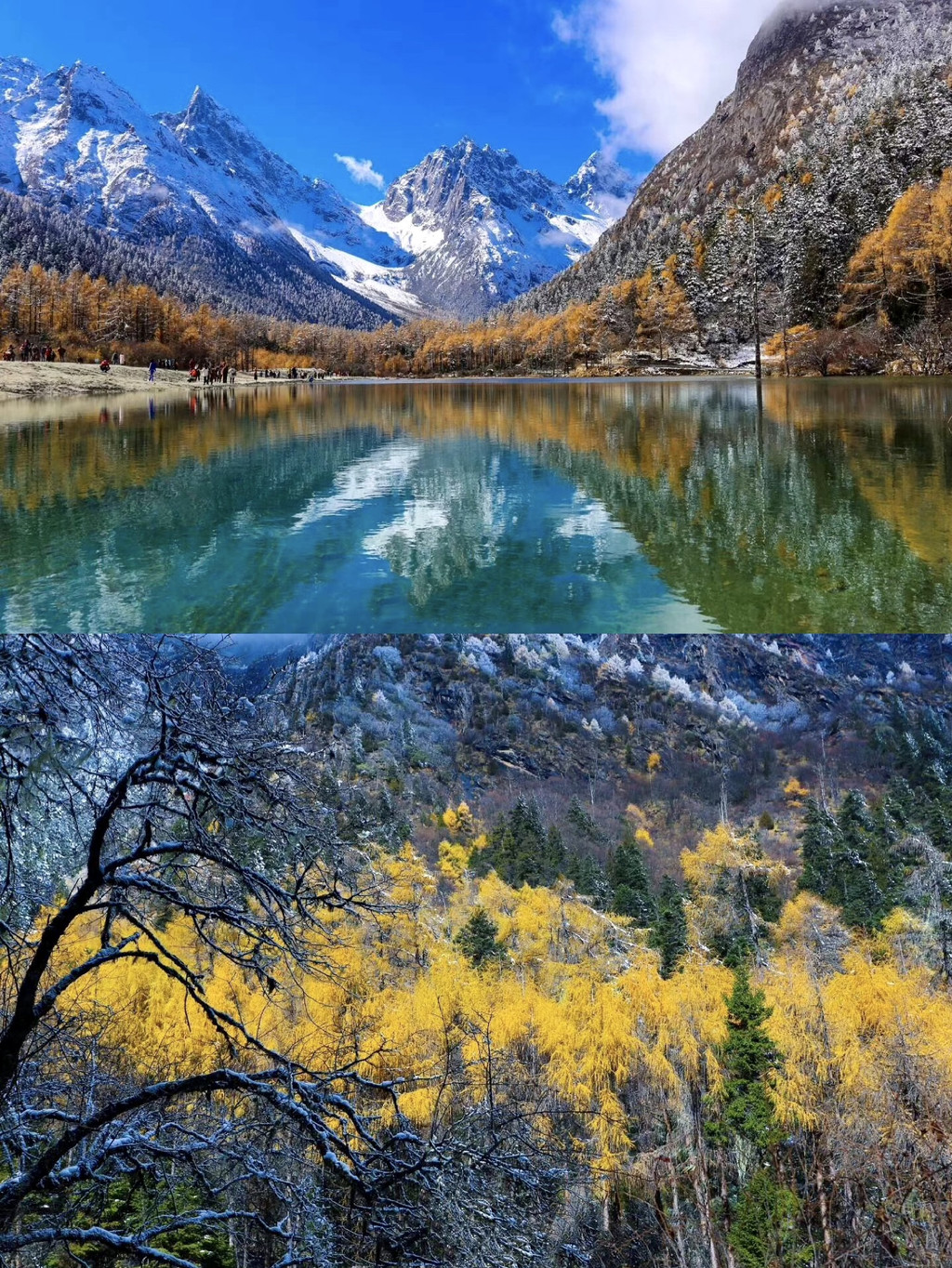 被誉为 川西 瑶池,山野苍茫中,更有两汪绝美湖泊隐藏其中。由于靠近蜀山皇后,她也被比作 四姑娘山 的美丽背影。这是个五彩斑斓的世界,浓绿的树,深红的叶,青青的湖,湛蓝的天,纯白的雪,构成一幅幅油画,等你来置身画中。