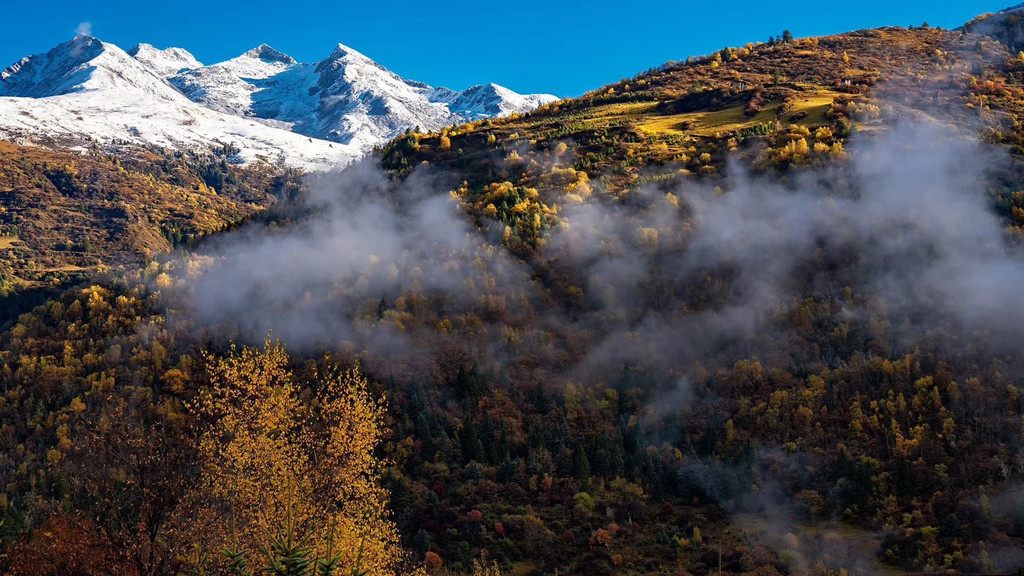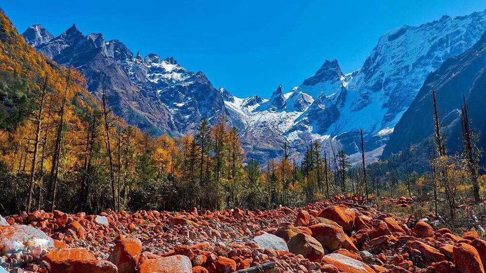 秋天的 米亚罗 ,拥有“三千里红叶,三千里江山”美誉。沟沟有红叶,沟沟有融雪,沟沟有泉涌。