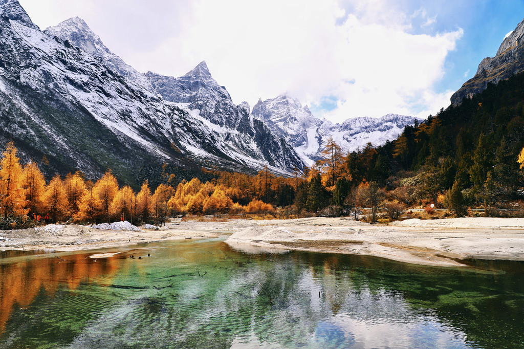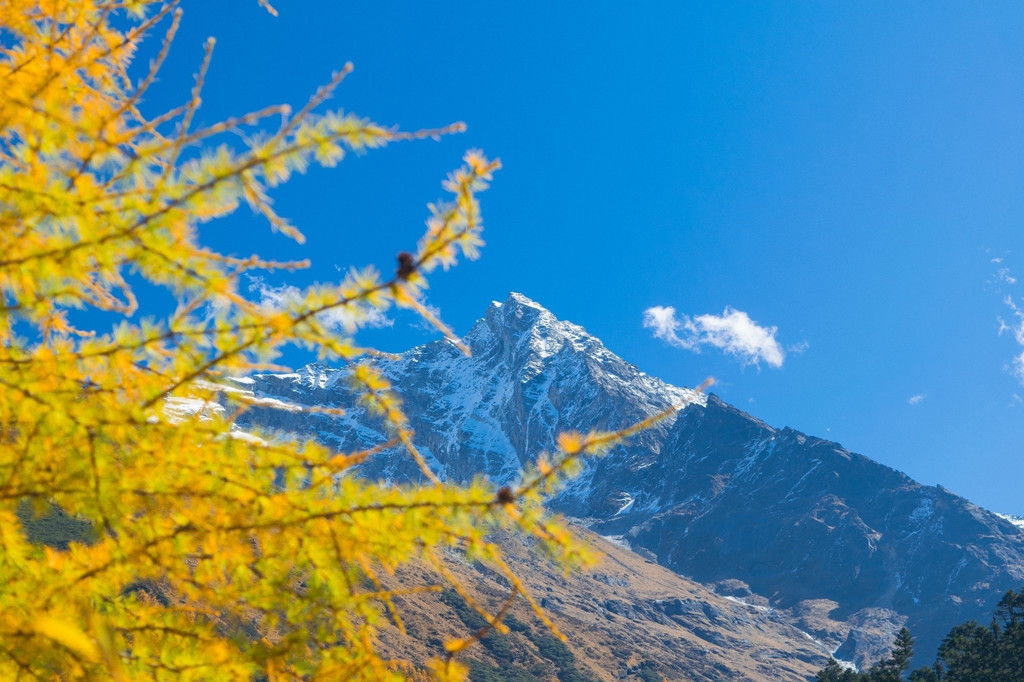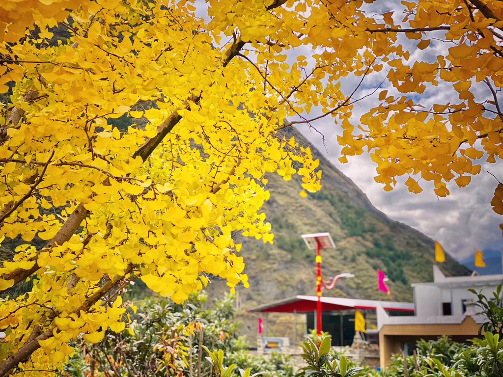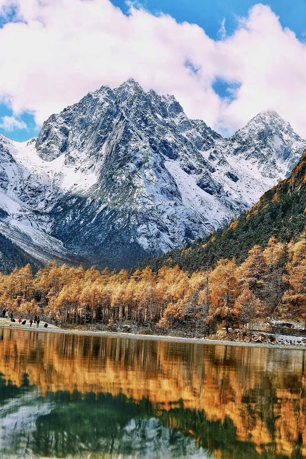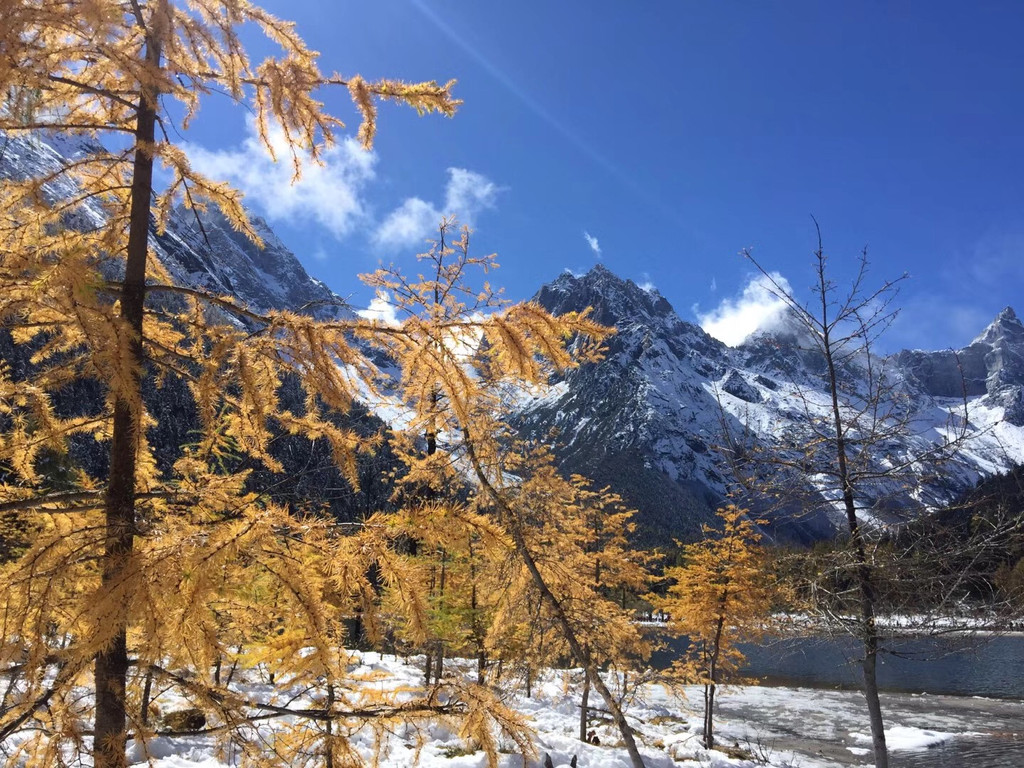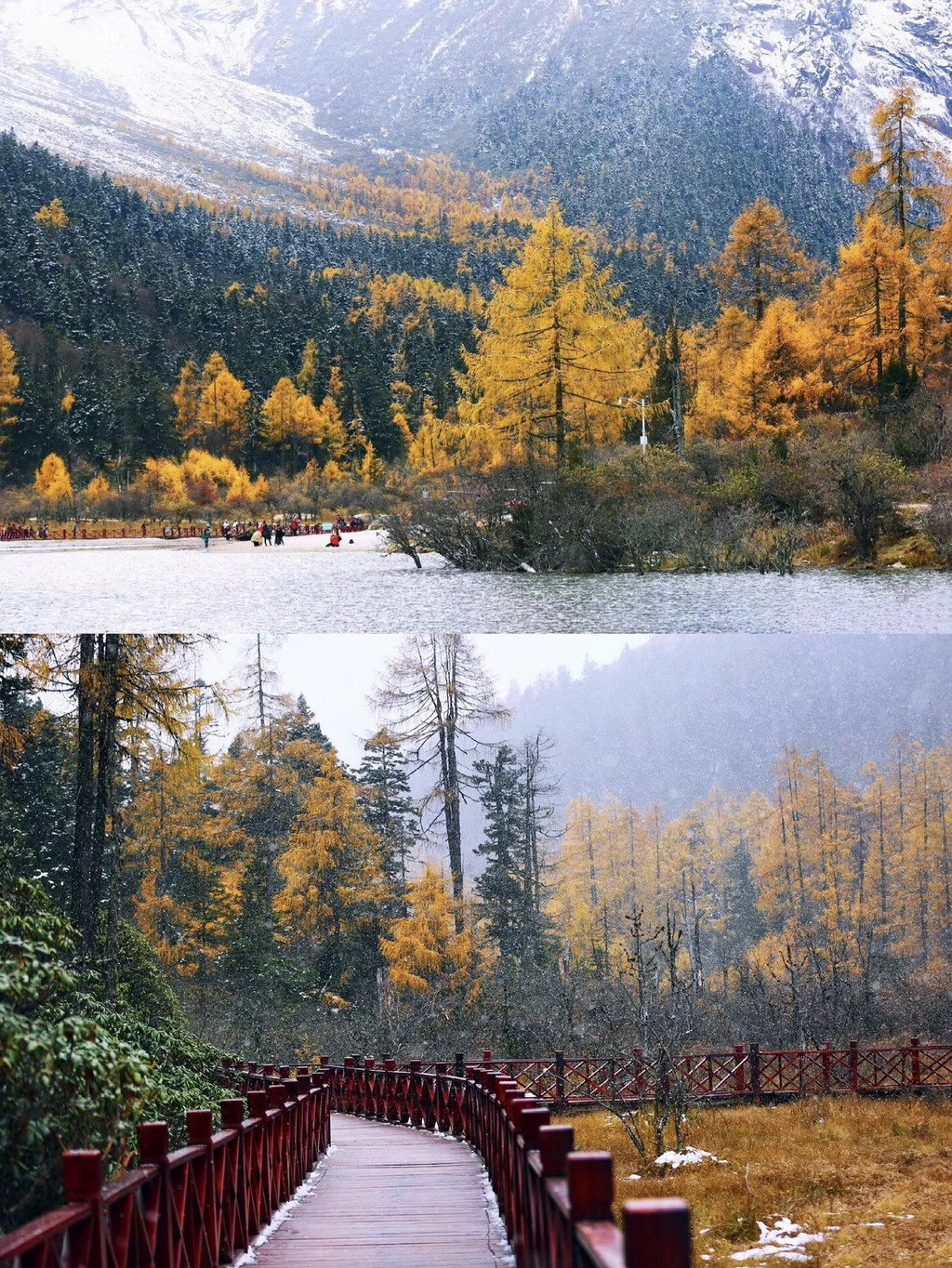 毕棚沟 的美丽在于远处便是雪山,两岸都是金色的黄叶,随手拍都很美,山上经常会下雪