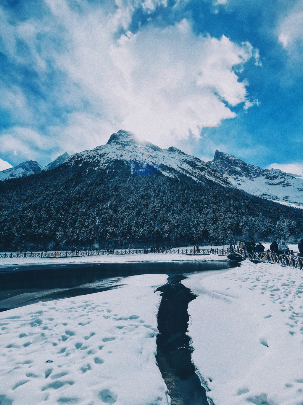 山中气候精灵一样多变,正午太阳出来,山峦像个新娘,慢慢地、轻轻地掀起它的盖头,一点点露出白雪覆盖的容颜,阳光下泛着羞涩的目光。一会功夫浓雾又滚滚卷来,还没看清山的真颜,又沉入了新的迷蒙中。