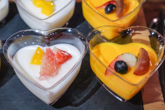 晚餐比早餐丰盛很多,既有大闸蟹、生蚝蒸粉丝、炸鸡翅等荤菜,也有各种西式甜点,新鲜水果也是无限供应的,找一个靠窗的位置坐着,窗外是漫漫白雪,室内是被食物的味道包裹着幸福,坐下来静静享受该是多么惬意。