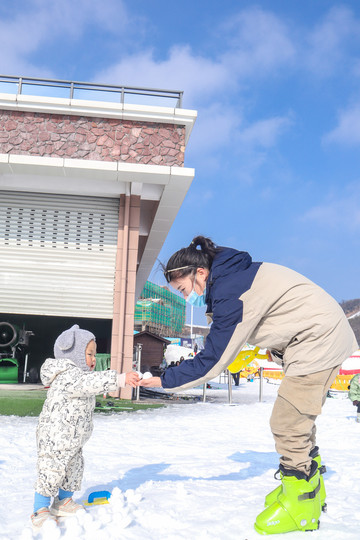 滑雪场随处可见小朋友们,有的是家长带着练习,有的是教练带着,甚至还有刚学会走路的宝宝坐在一旁玩雪,这里不仅适合团建、朋友出游、也很适合亲子游。