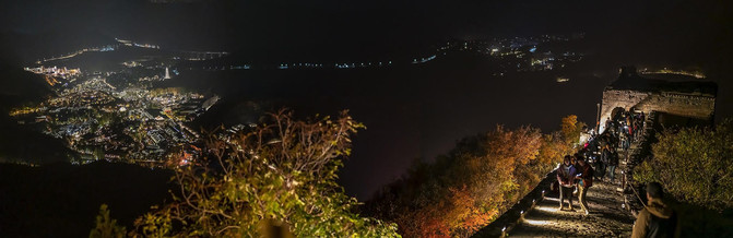 城墙上的雉堞全失,夜晚的敌楼免登,人都站在远处的城墙上张望。那些人里面没有我,我在操作照相机。