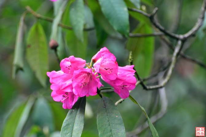 担心还是成为了现实,漫山遍野的绿色山峦上,只是点状地散落着绽开的花朵。好在,虽然没有满眼的芬芳,但夺目的惊艳还是让人喜出望外。虽有访前的功课,但也绝无想到记忆中灌木丛生的杜鹃在这里竟然棵棵过人高,枝枝撩眉梢,硕大的花朵竟也堪比牡丹,艳丽的浓烈竟也堪比桃花,含苞待放的花蕾状若绣球,令一行走南闯北的人物不禁啧啧称赏。