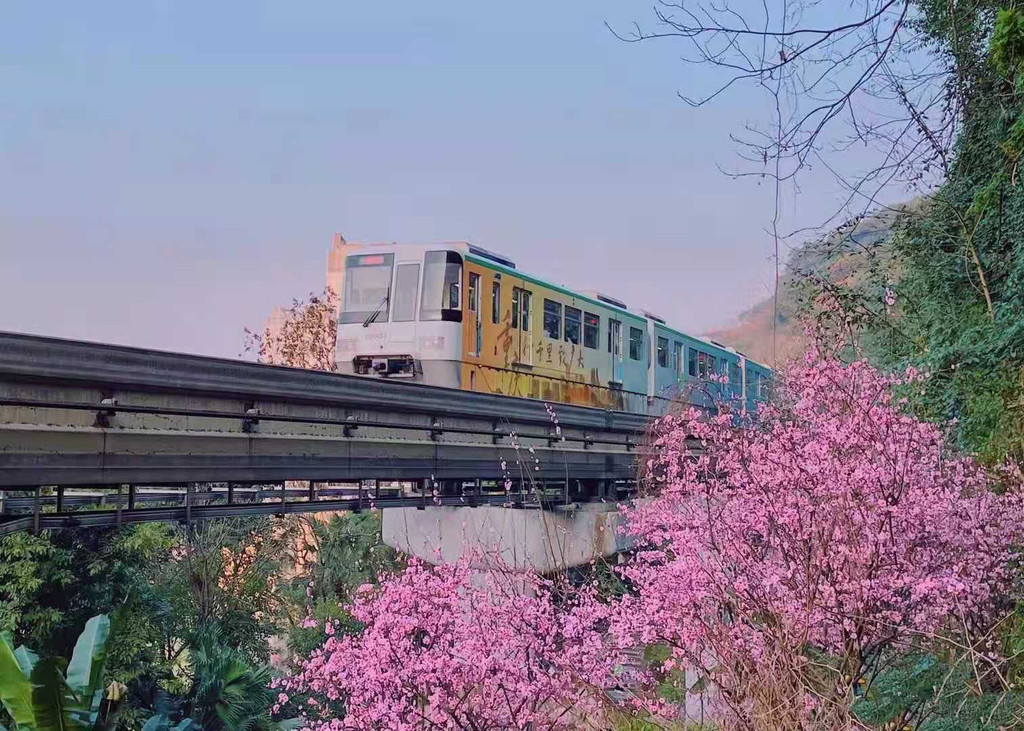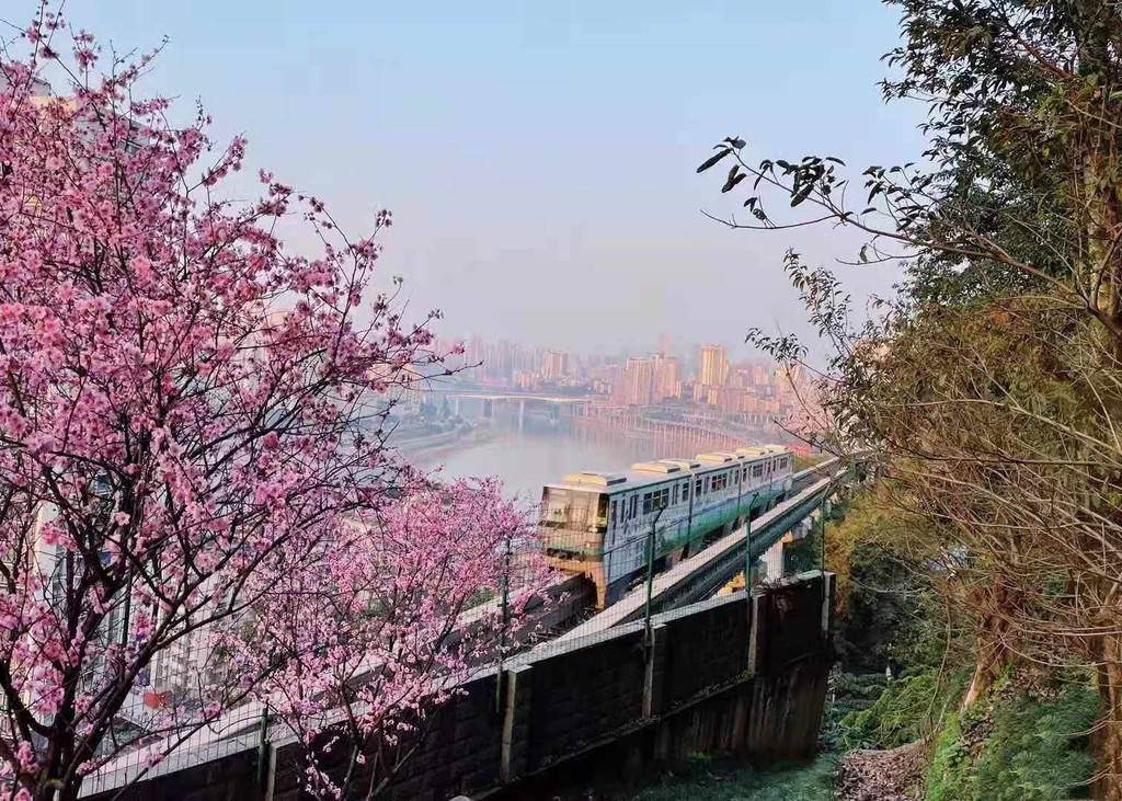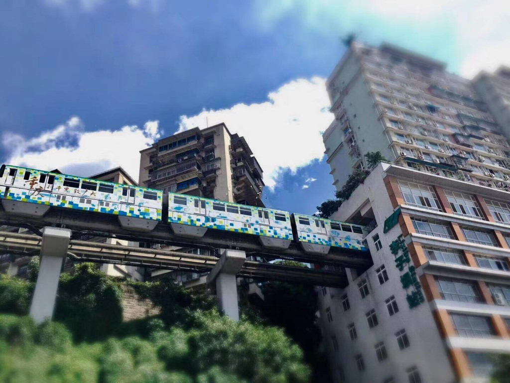 李子坝轻轨穿楼:酒店出门步行3分钟可以乘808路公交车到达李子坝;哈哈哈,现场看见一位小姐姐正“吞下”一辆火车了----拍照哈;中午可以去尝尝李子坝的梁山鸡哦。