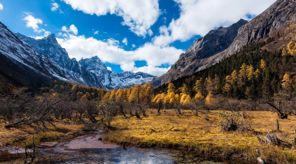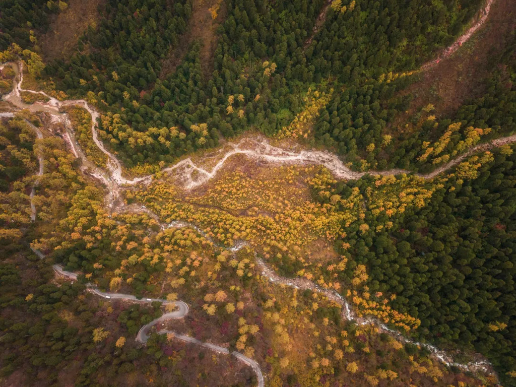 毕棚沟也是国内赏秋最美的地方之一,四周连绵起伏的山给它增添了几分壮阔。