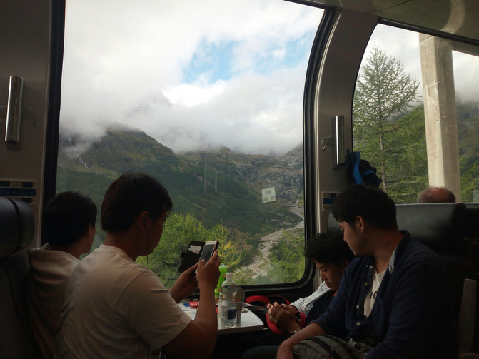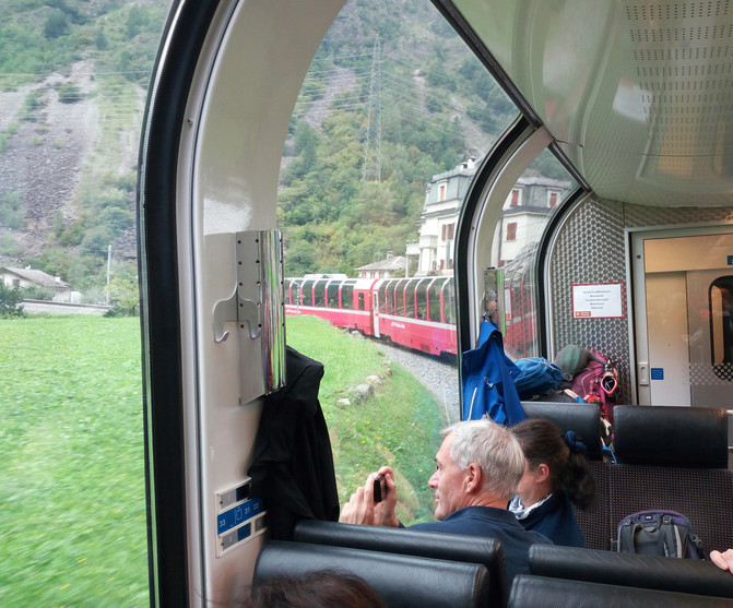 今天乘贝尔尼纳(Bernina Express)观光火车从瑞士圣莫利茨(St. Moritz)去意大利的蒂拉诺(Tirano),然后换意大利火车TRAIN #2569去米兰,运行时间2小时32分,距离154公里。车票是出发前在国内欧铁官网预定的电子票。