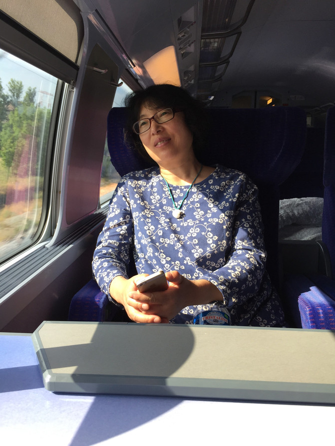 这段路火车要开4个多小时,我们预先没有预定座位,火车从柏林出发很空,我们的一等车厢宽敞舒适,还有安静的隔离区,里面不许用手机打电话,不许说话。每个座位上方座位号附近有个R字母的小框,如果里面有字条,这个座位可能就被后面车站上车的乘客预订了。你可以先坐,预定者来了你再让座。奇怪的是,那些预定者反倒十分客气、谦恭,好像做了对不起你的事,因为让你起来他坐下了。哈哈!