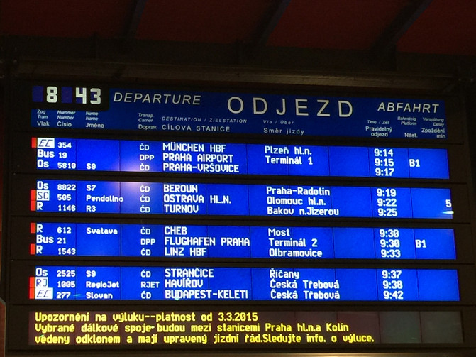 一早从酒店坐24路电车到了布拉格中央火车站。这座火车站是拿破仑修建的,当年第一列火车从维也纳到布拉格总共才有9名旅客,今天车站里人头攒动,熙熙攘攘。我们在这里乘09:20 开车的SC 505 Pendolino 火车去奥斯特拉法(Ostrava)。奥斯特拉法是捷克东部靠近波兰边境的一座工业城市,是捷克第二大城市。火车发车晚点了20分钟,三个半小时就横跨捷克全境到了奥斯特拉法。