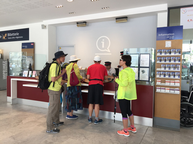售票处的效率我们在嘎纳已经领教过了,每个窗口平均15分钟接待一个客人。那天排队买票时,嘎纳到尼斯的火车都过去两班了,售票窗口都没轮到我们买票(那里的售票机坏了,只能到窗口买票)。不过这次还好,工作人员带我到特殊窗口换了新票。与原来不同的路线,多换一次车,晚1小时到达,并把二等舱升为头等舱。
