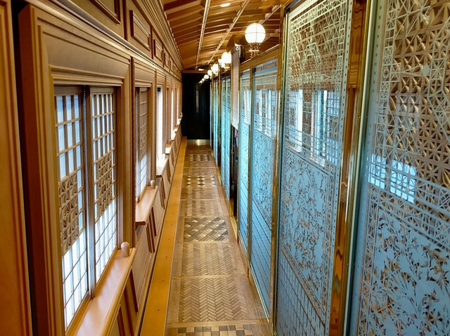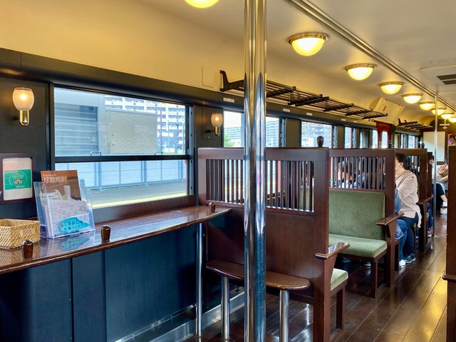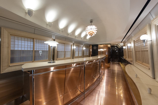 精美窗格再现工艺匠心,玻璃隔层的设置恰到好处,连同复古的座椅以及其他陈设,车厢内装透露出清新淡雅的风致。在如此清丽的日式空间内或小酌,或用餐,享受一段妙不可言的列车之旅。