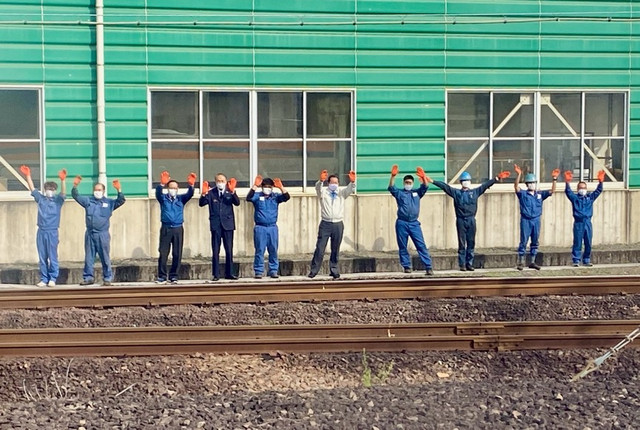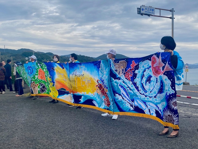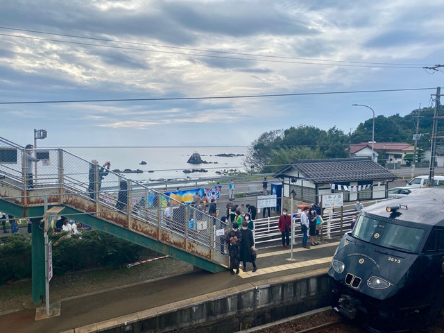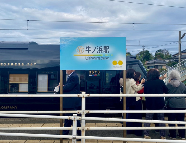 列车疾驰,下午2点半抵达牛之浜站。当地居民会在车站举行欢迎仪式。