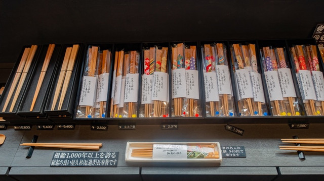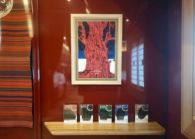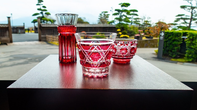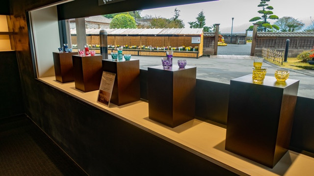 从御殿出来就到了手工艺品展区。这里多为鹿儿岛的传统工艺品“萨摩切子”和“屋久杉”。萨摩切子的表面覆盖着一层薄薄的彩色玻璃,里面则是透明度极高的水晶玻璃,制作工艺精湛;而有些屋久杉工艺品则因原料特殊,数量稀少,因此倍加珍贵。
